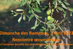 Rencontre œcuménique à l’occasion du culte qui sera célébré au Temple des Terreaux, 10 rue Lanterne, LYON 1er Les prières, les lectures bibliques et la prédication seront données sous forme de dialogue entre le père Christian Delorme et le Pasteur Christian Bouzy. Le projet de cette rencontre oecuménique est porté par les clubs des amis de RCF qui seront présents et nous inviteront à un temps d’échange autour d’un apéritif à l’issue du culte. Une rediffusion du culte est prévue le jour-même sur les ondes de RCF Lyon. Dimanche des Rameaux avec l'Eglise protestante unie ! Chère Amie, cher Ami de RCF Lyon,Parce que l’œcuménisme est au cœur de l'identité de RCF, nous avons la joie de vous proposer de vivre un temps spirituel fort avec l’Église protestante unie de France, pour le dimanche des Rameaux. Le pasteur Christian Bouzy, membre du CA de RCF Lyon, a construit cette rencontre avec le Père Christian Delorme. Il s'agira d'un culte co-célébré, vécu dans un esprit de dialogue œcuménique. Culte des Rameaux Dimanche 2 avril à 10h30Temple des Terreaux Ce culte sera suivi d'un temps de rencontre et d'échanges informels avec la communauté des Terreaux autour d'un verre de l'amitié, organisé par le Club RCF. Venez en famille, nous vous attendons nombreux !La commission SPI du Club, Claire, Marie-Hélène et Olivier Agenda de la rencontre : 10h15 - Accueil 10h30 - Célébration des Rameaux 12h00 - Verre de la rencontre 12h45 - Fin Je m'inscris le 2 Avril